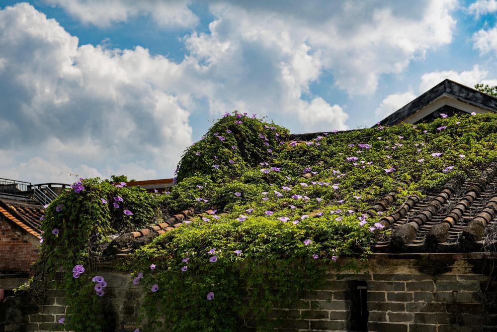塱头村内一古屋顶上爬满植物(9月13日摄)德宏信投。