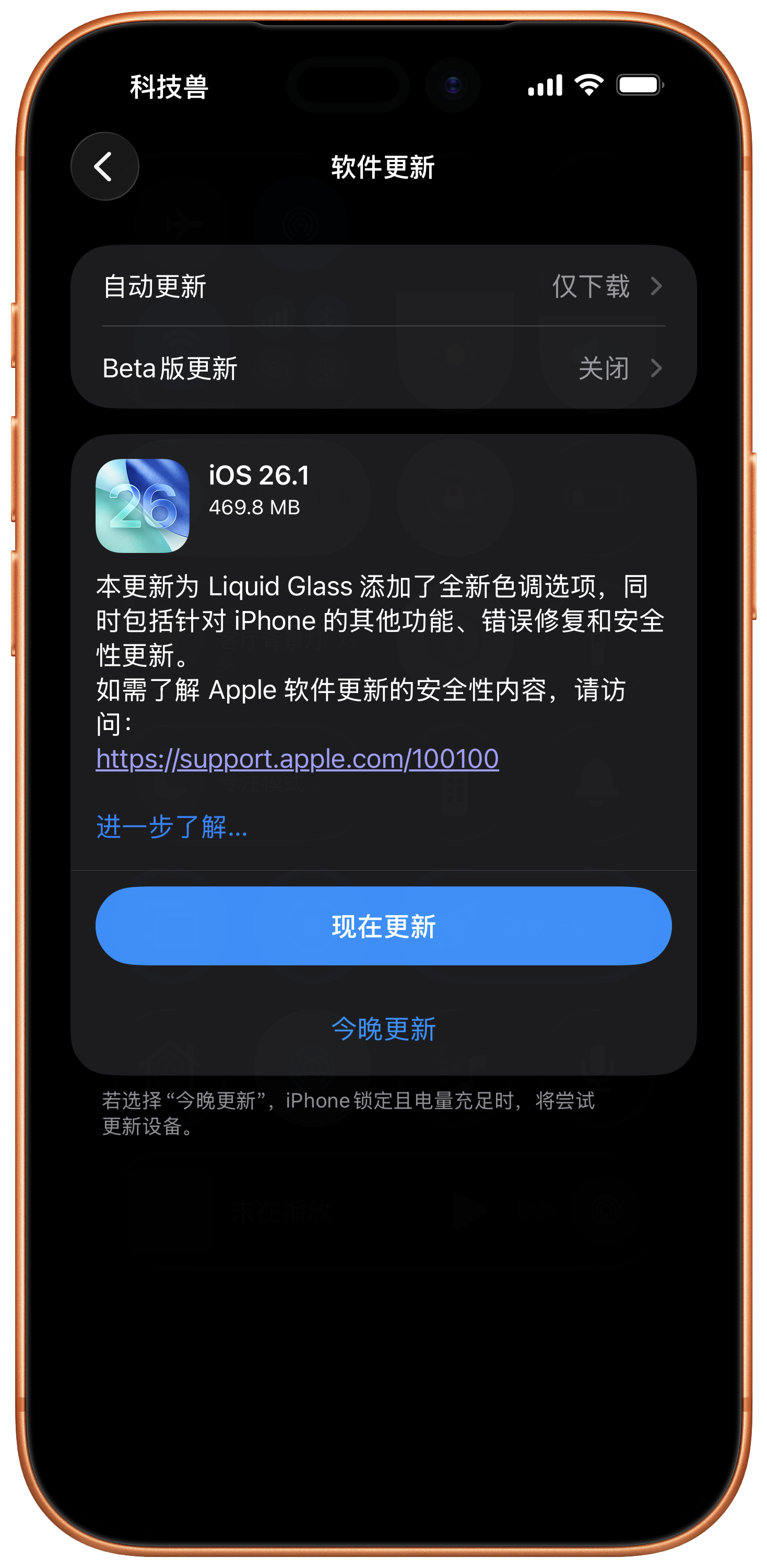 iOS 26.1 为用户带来了一些新功能和界面改进,以下是对该版本主要更新内容的汇总: