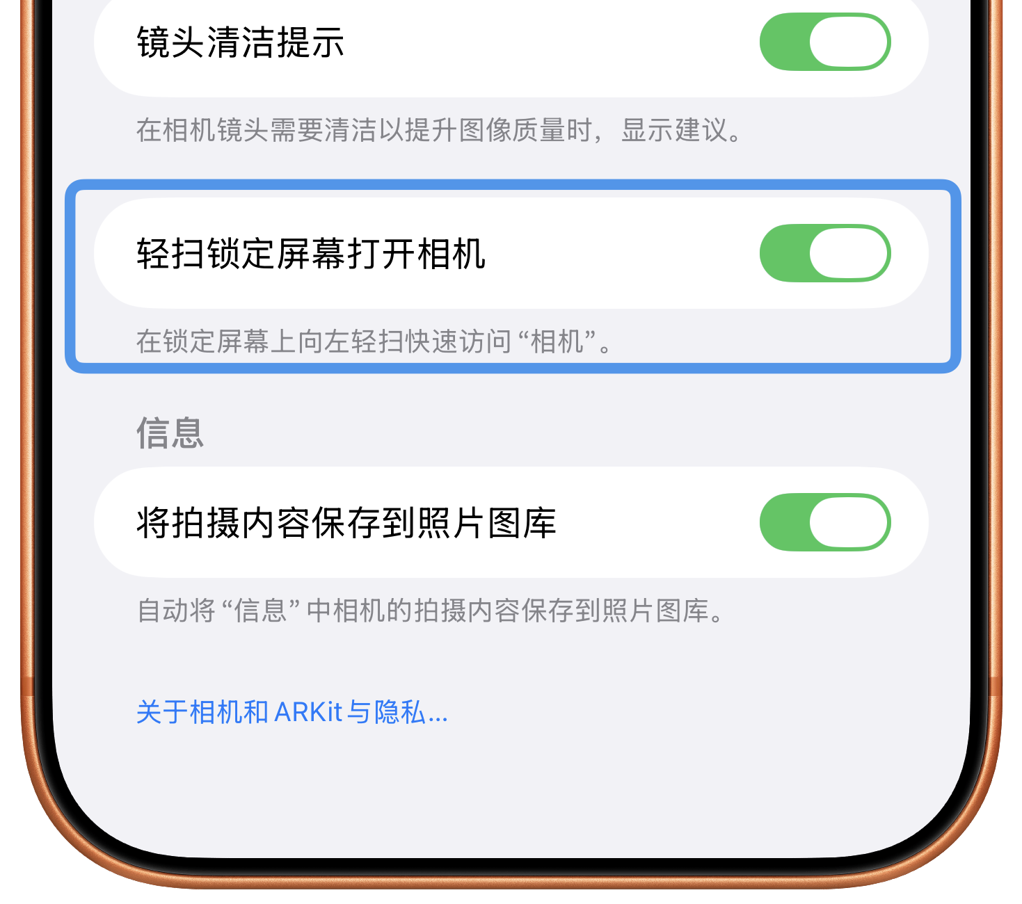 在相机设置中,iOS 26.1 增加了一个选项,可以关闭锁屏界面的左滑启动相机功能。