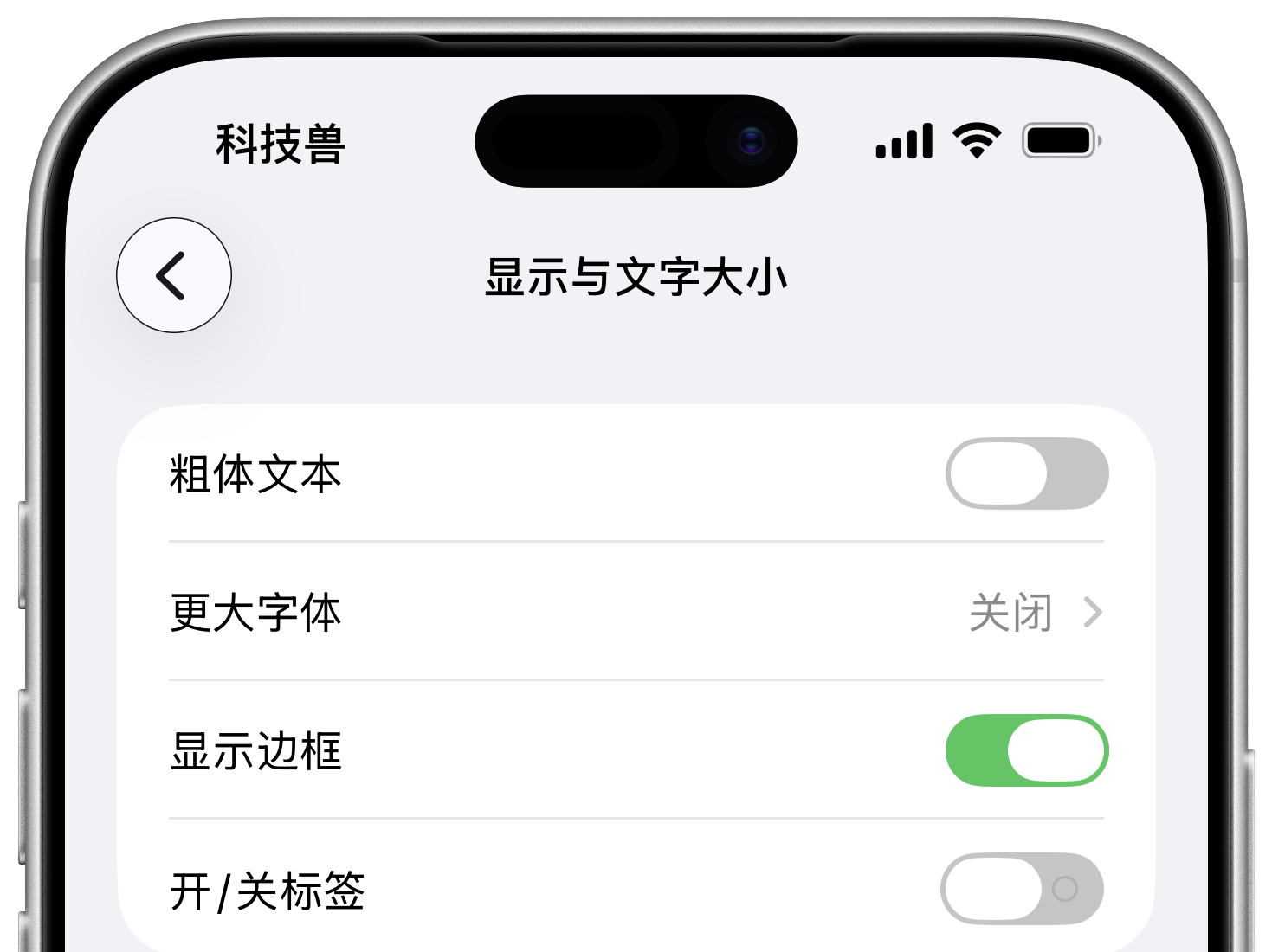 iOS 26.1 的「辅助功能 - 显示与文字大小」设置中,新增了一个「显示边框」的开关。